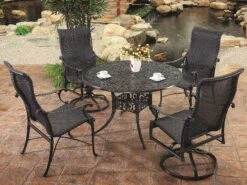 Gensun Grand Terrace Cast Aluminum 63”W X 42”D Rectangular Dining Table With Umbrella Hole