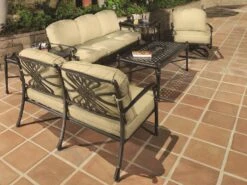 Gensun Grand Terrace Cast Aluminum 63”W X 42”D Rectangular Dining Table With Umbrella Hole